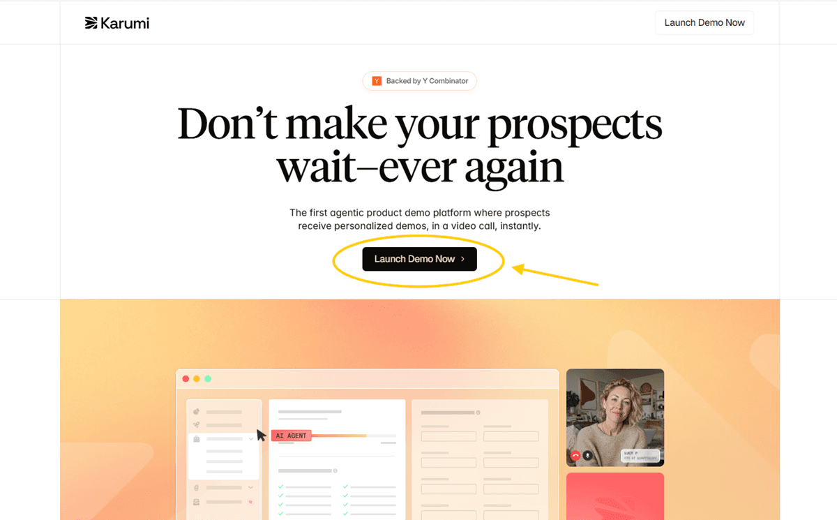 This is usually done using a button, a link, or a CTA (Call to Action) that is integrated directly into your website, landing page, or even in marketing emails. This CTA is the key step that invites the user to start the demo and make the first contact with the AI agent, thus beginning the interactive product experience.